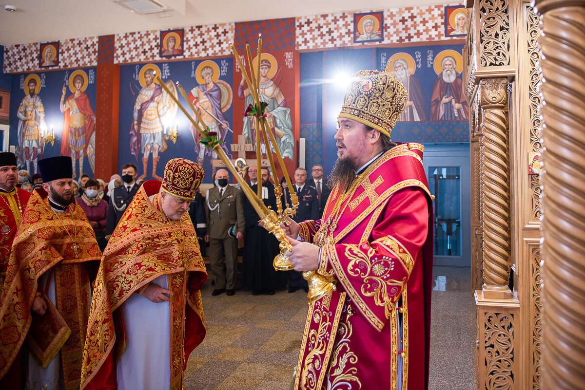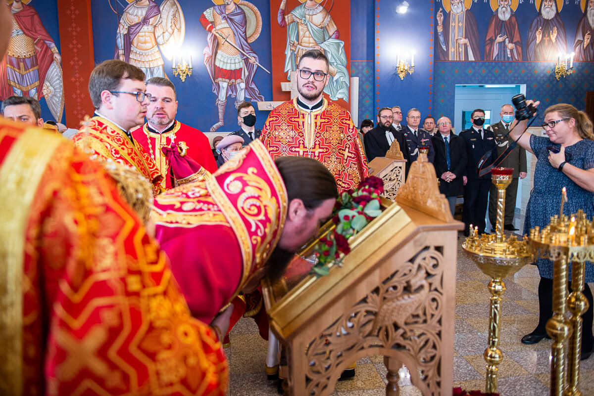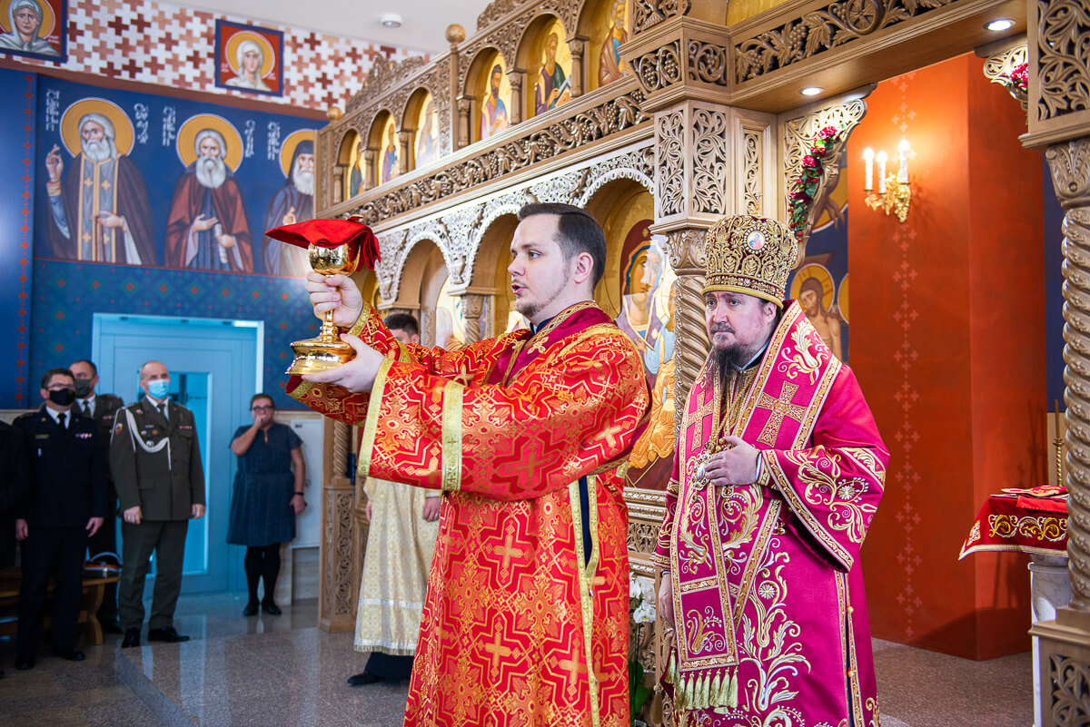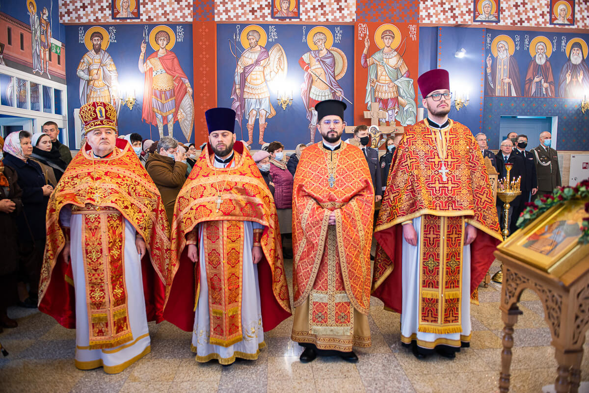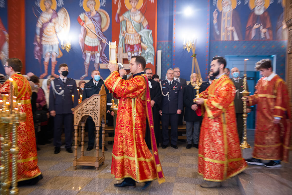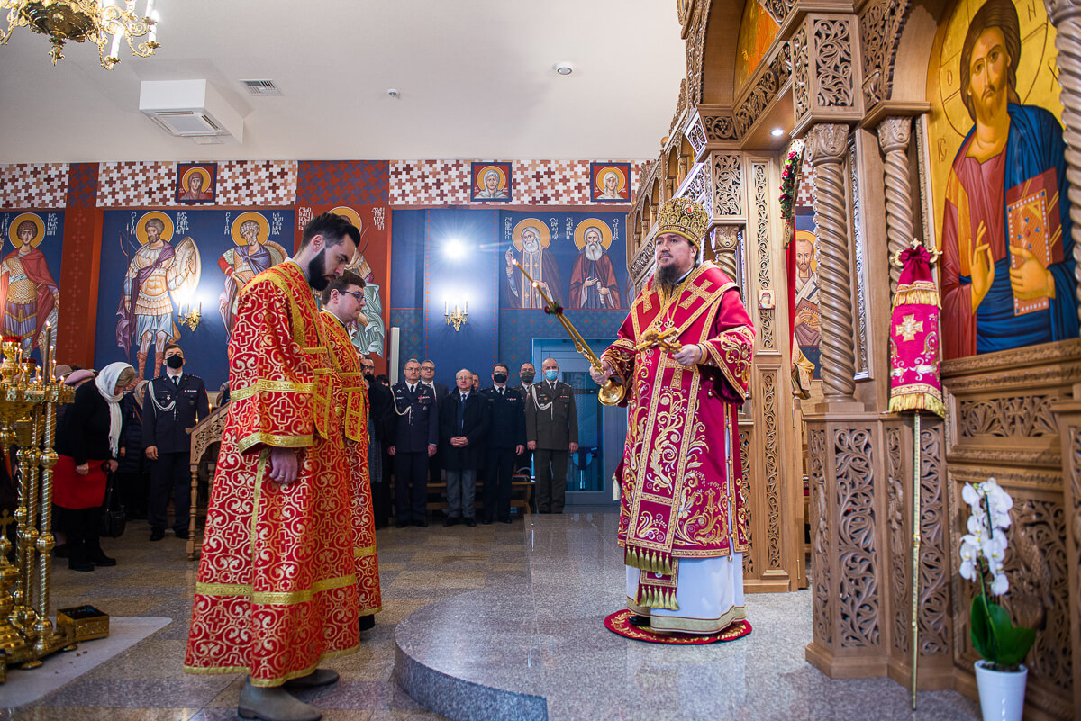 Rodziny służb mundurowych oraz wierni tworzący parafialną wspólnotę zgromadzili się tłumnie na uroczystej Boskiej Liturgii św. Jana Chryzostoma, której przewodniczył Jego Ekscelencja Najprzewielebniejszy Jerzy, Arcybiskup Wrocławski i Szczeciński, Prawosławny Ordynariusz Wojskowy. W nabożeństwie eucharystycznym ordynariuszowi asystowali dziekani oraz kapelani różnych formacji mundurowych.