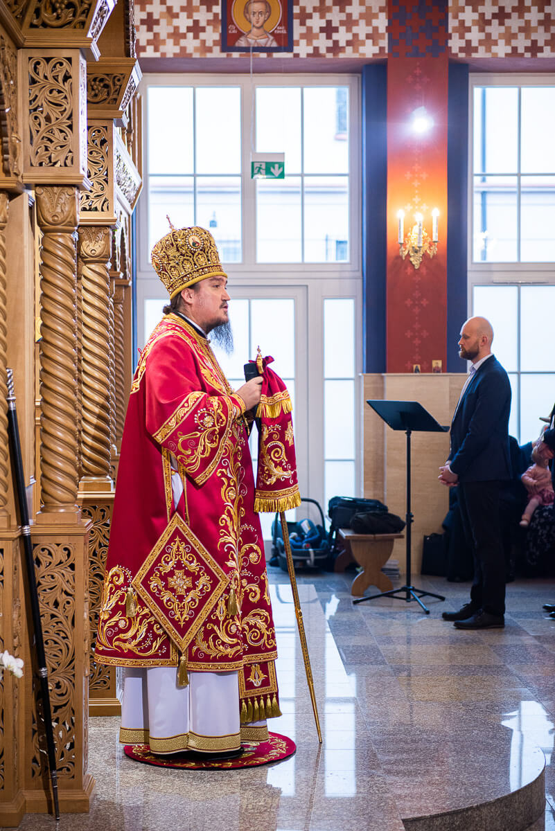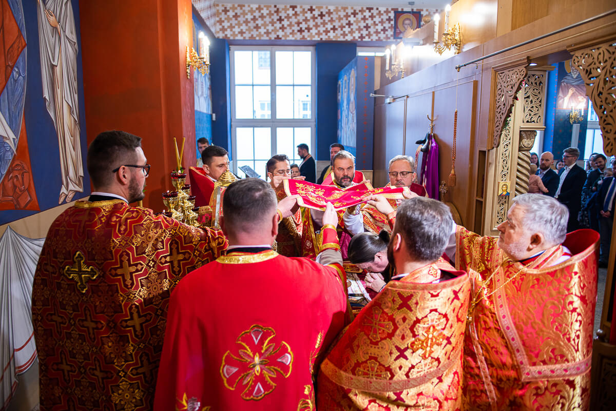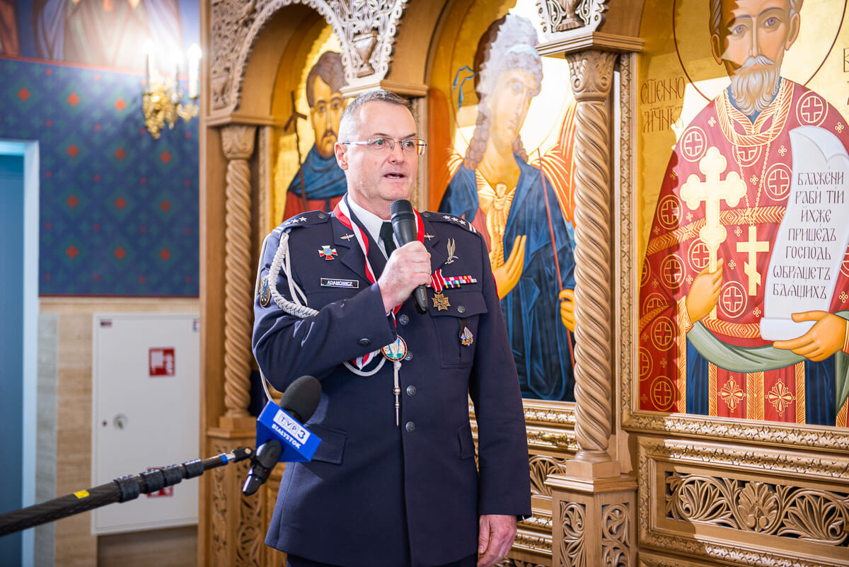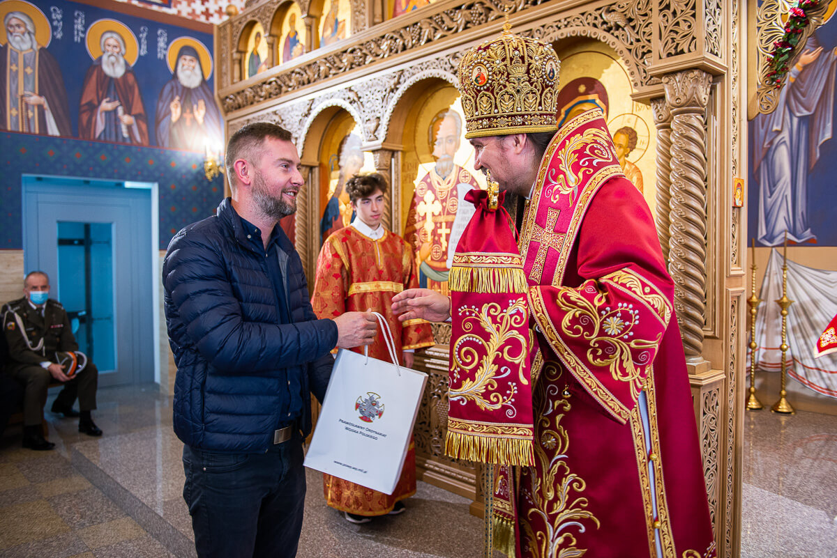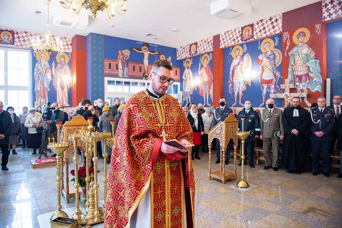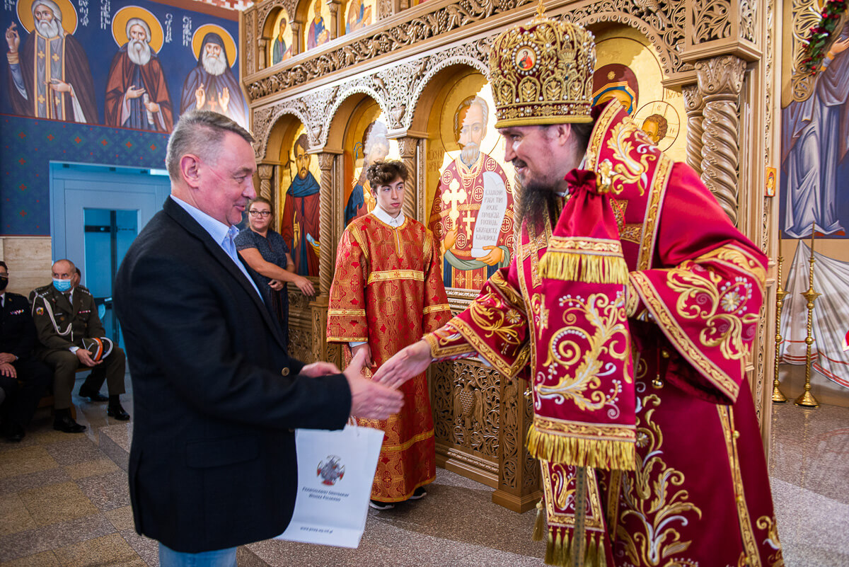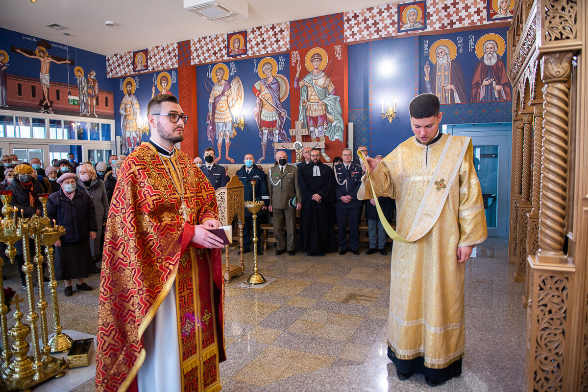 Rodziny służb mundurowych oraz wierni tworzący parafialną wspólnotę zgromadzili się tłumnie na uroczystej Boskiej Liturgii św. Jana Chryzostoma, której przewodniczył Jego Ekscelencja Najprzewielebniejszy Jerzy, Arcybiskup Wrocławski i Szczeciński, Prawosławny Ordynariusz Wojskowy. W nabożeństwie eucharystycznym ordynariuszowi asystowali dziekani oraz kapelani różnych formacji mundurowych.