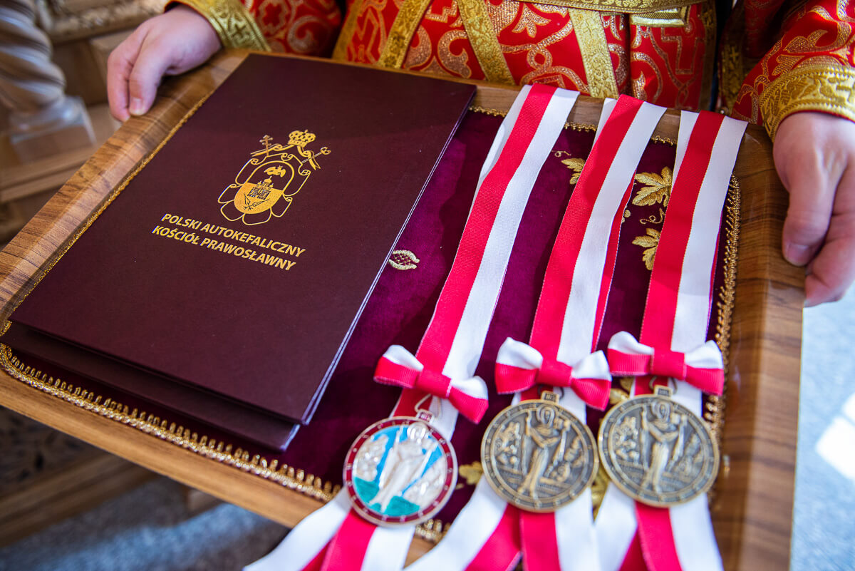 Następnie arcybiskup powierzył ks. mitratowi płk. rez. Aleksemu Andrejukowi odczytanie soborowych dyplomów o wyróżnieniu i nagrodzeniu osób szczególnie zasłużonych dla powstania cerkwi św. wielkomęczennika Dymitra Sołuńskiego w Białymstoku. W imieniu Św. Soboru Biskupów Polskiego Autokefalicznego Kościoła Prawosławnego nadano następujące odznaczenia: Order Świętej Równej Apostołom Marii Magdaleny II stopnia – płk Marek Adamowicz, Order Świętej Równej Apostołom Marii Magdaleny III stopnia – Pan Maciej Więckowski, Order Świętej Równej Apostołom Marii Magdaleny III stopnia – Pan Marek Jassak. Wymienione osoby doprowadziły stan techniczny budynku pod względem realnym do potrzeb świątyni prawosławnej. Kolejnym punktem było wręczenie ikon pamiątkowych dla Pana Dominika Zaremby, Pana Krzysztofa Stankiewicza oraz Pana Dariusza Bartosińskiego. Na koniec głos zabrał płk Marek Adamowicz z Inspektoratu Wsparcia Sił Zbrojnych dziękując za zaproszenie na uroczystość święta parafialnego i wyrażając swój podziw dla powstałej cerkwi wojskowej.