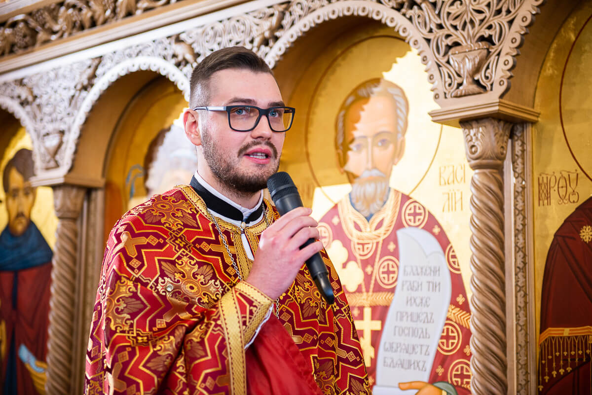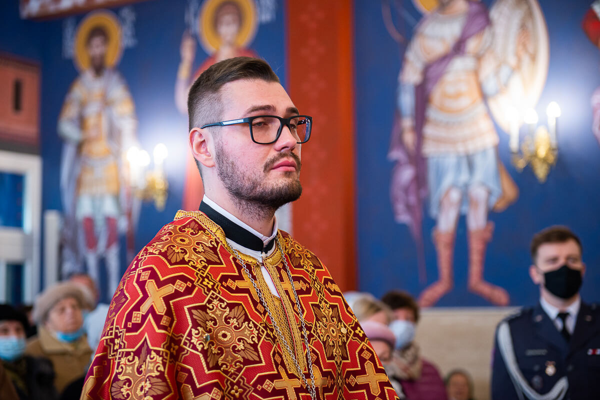 Tuż po odczytanej perykopie ewangelicznej ze słowem pouczenia zwrócił się do wiernych Prawosławny Ordynariusz Wojskowy. W wygłoszonej homilii hierarcha przedstawił żywot i czyny św. wielkomęczennika Dymitra Sołuńskiego podkreślając jego męstwo i prawdziwą wiarę w Chrystusa niezależnie od zaistniałych okoliczności: “Życie świętego w pewnym momencie stało się życiem w ludzkiej niesławie, ale w ogromnej sławie Bożej. Wspominamy o tym, aby podziwiać determinację wielkomęczennika w dążeniu do świętości. O świętym Dymitrze mówiło się, iż w Salonikach dokonał on tego, czego nie zdążył dokonać święty apostoł Paweł, zarówno podczas swego życia, jak i po śmierci męczeńskiej”. Władyka zwrócił uwagę na postawę świętego Nestora, który będąc zwycięzcą w walce z gladiatorem Liuszem zachował trzeźwość umysłu i świadomość, że siłą sprawczą wygranej potyczki nie była tężyzna fizyczna czy wyszkolenie bojowe, a modlitwa wstawiennicza św. wielkomęcznnika Dymitra z Tesaloniki. Świadczy to o niezwykłej dojrzałości duchowej Nestora, w której każdy z nas winien się nieustannie doskonalić i wzrastać. “Choć wielkomęczennik Dymitr stracił wszystko na ziemi, zyskał nieprzemijające dobro na niebiosach. Jest on dla nas wzorem do naśladowania, nie tylko w sensie jego wiary, ale przede wszystkim w bardzo mądrym traktowaniu tego, co dała mu ziemska sława. Dymitr wielkomęczennik umiał we właściwy sposób przyjmować i obchodzić się z własnymi awansami, karierą i ziemską chwałą. Jest to niewyobrażalnie trudne i wymaga niewyobrażalnego wysiłku, mając poklask od wszystkich wokół, a w szczególności, gdy uwierzymy, że poklask ten nosi w sobie znamiona szczerości. Święty Dymitr choć miał, to nigdy w takowy poklask nie uwierzył. Nie przekroczył nigdy granicy, która zaburzyłaby i naruszyłaby jego wewnętrzny świat. Każdy z nas w pewnym momencie swego życia spotyka się z podobną sytuacją. Każdy bez wyjątku staje kiedyś w obliczu podjęcia trudnych wyborów. Czy mamy więc mówić tak, jak wszyscy w około, czy raczej zachować wiarę w to, iż Bóg nas nie pozostawi? Receptą na udane życie człowieka na ziemi jest odwaga wyrażania tego, co stanowi dla niego niepodważalną prawdę. Sednem fenomenu męczeństwa jest to, iż męczennicy nigdy nie sprzeciwili się prawdzie, którą za prawdę uznawali. W Ewangelii wg św. Łukasza czytamy, iż Bóg wybacza człowiekowi każdy grzech, poza bluźnierstwem przeciwko Duchowi Świętemu. Rzesze Ojców i pisarzy chrześcijańskich zastanawiały się nad tym, co jest bluźnierstwem przeciwko Świętemu Duchowi. Z odpowiedzią na to pytanie przychodzą rozważania św. Jana Chryzostoma, który mówi, iż bluźnierstwo przeciwko Duchowi Świętemu jest grzechem, kiedy człowiek występuje przeciwko tej prawdzie, o której wie, że jest ona zaiste prawdą – kiedy występuje on przeciwko własnemu sumieniu. Wszyscy męczennicy na czele ze św. Dymitrem przestrzegali zasady, aby prawdę pielęgnować i ją otwarcie głosić, a także być jej wiernym za wszelką cenę”.